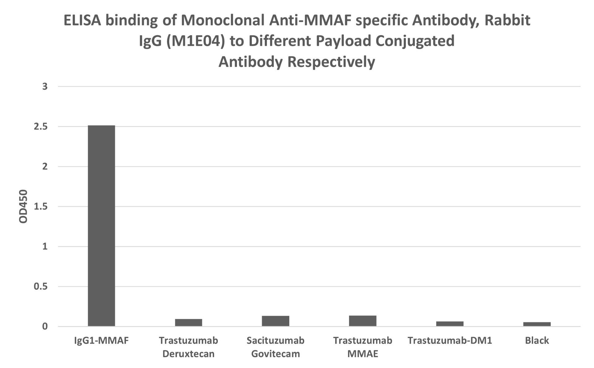 Monoclonal Anti-MMAF specific Antibody, Rabbit IgG (M1E04) (Cat. No. AB00011) is specific to IgG1-MMAF and has no cross-reactivity with Trastuzumab Deruxtecan, Sacituzumab Govitecam, Trastuzumab MMAE and Trastuzumab-DM1 (Routinely tested).